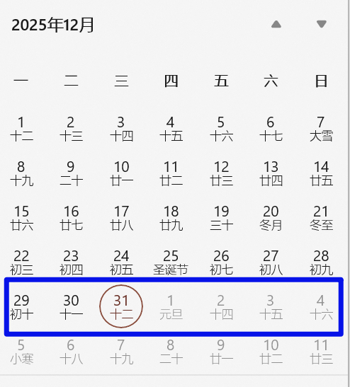 这就导致一个现象:有些 1 月初的日期,可能仍属于“上一年的最后一周”。